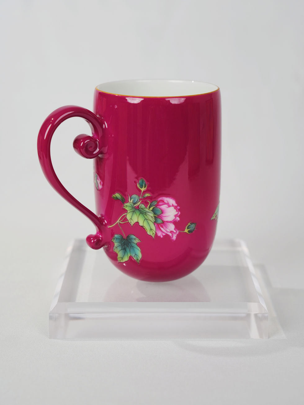 - Luminous Carmine Red Glaze: Deep, glossy carmine red glaze base that amplifies the vibrant pink peony hues, paired with a thin 24K pure gold rim for a touch of imperial luxury