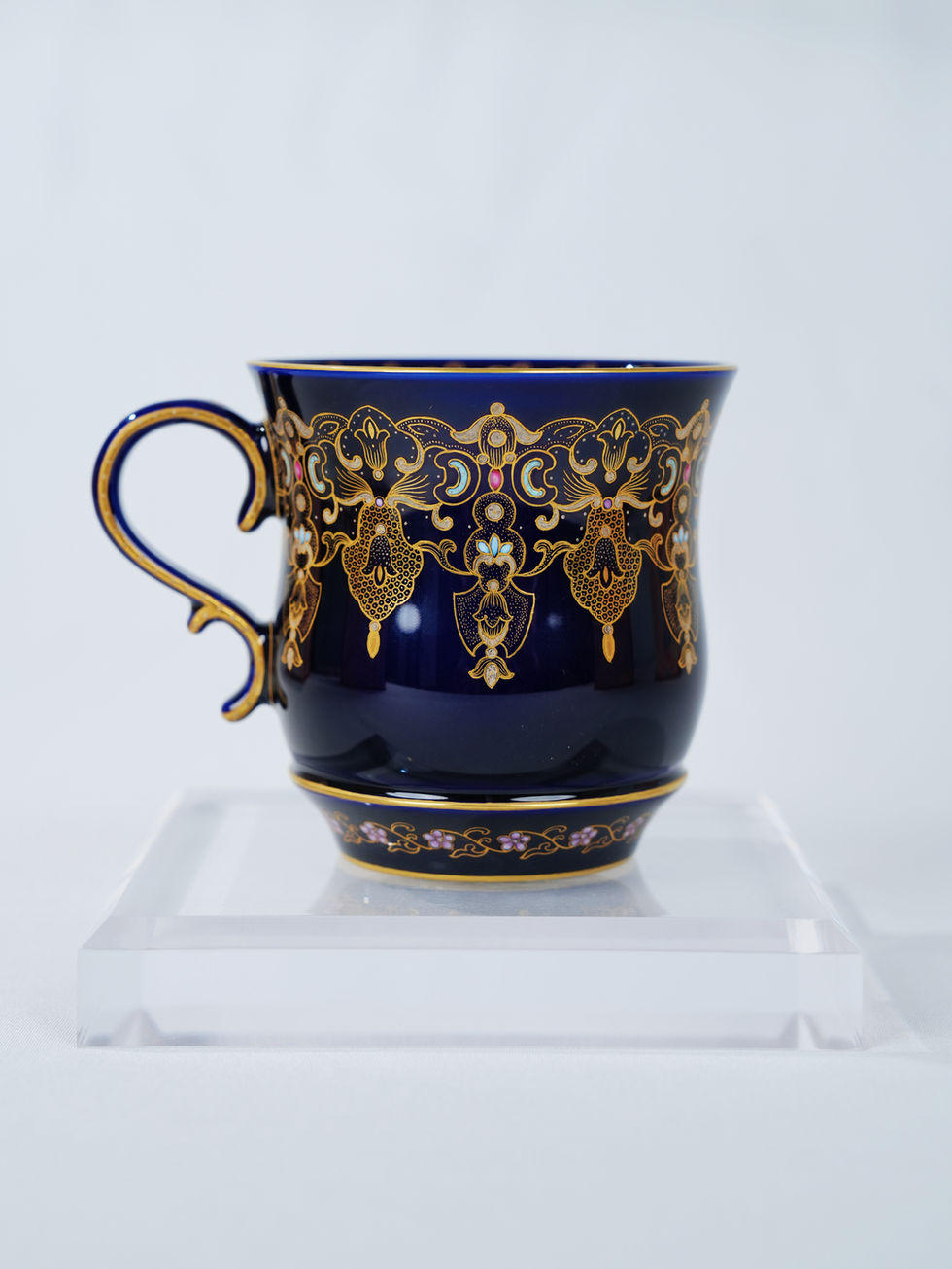 A seamless fusion of Eastern porcelain heritage and Western courtly artistry, this cup features a deep royal Ji blue glaze, intricate 24K gold gilding, and symmetrical Rococo motifs. Rooted in 1300℃ high-temperature firing, it embodies the opulence of European palaces while carrying the timeless durability of Chinese ceramic craft.